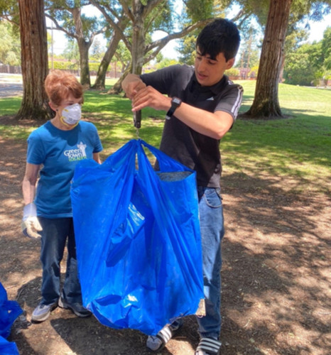 On a nice spring Saturday, a few of us volunteers along with Glenda Chang and Linda Ziff from GreenTown Los Altos, helped clean up the Permanente Creek diversion channel starting from Heritage Oaks Park and going 0.7 miles to a sewage pond near Highway 85. The diversion channel connects to Stevens Creek at Highway 85 which then flows to the San Francisco Bay.